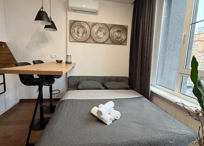 В апартаментах Апартамети люкс класу Київ, в районі Святошинський, гості можуть користуватися Wi-Fi та парковкою. Академ-сіті розташований на відстані 5 хвилин пішки, а Ірва Бізнес-центр - на відстані 10 хвилин їзди від апартаментів.